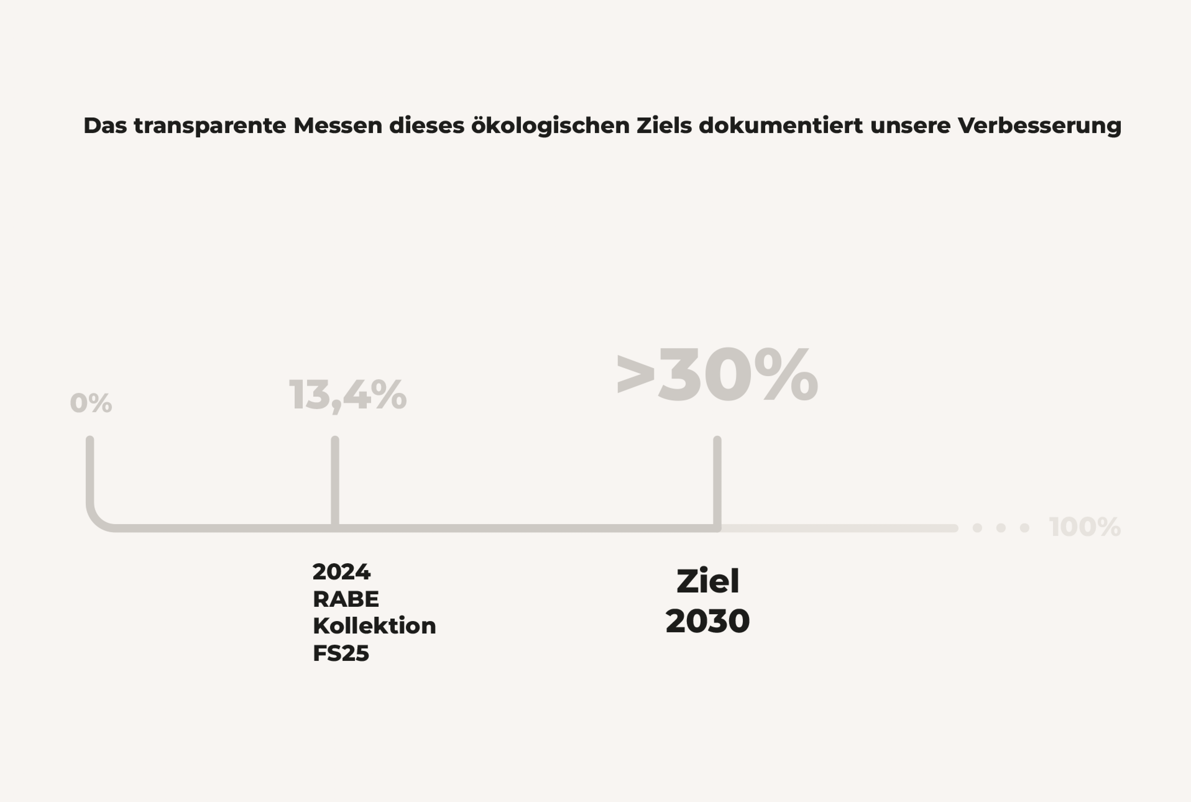 Unser ökologisches Ziel ist es, unseren Anteil von nachhaltigen Qualitäten in unseren Kollektionen bis 2030 auf mehr als 30 % zu steigern.